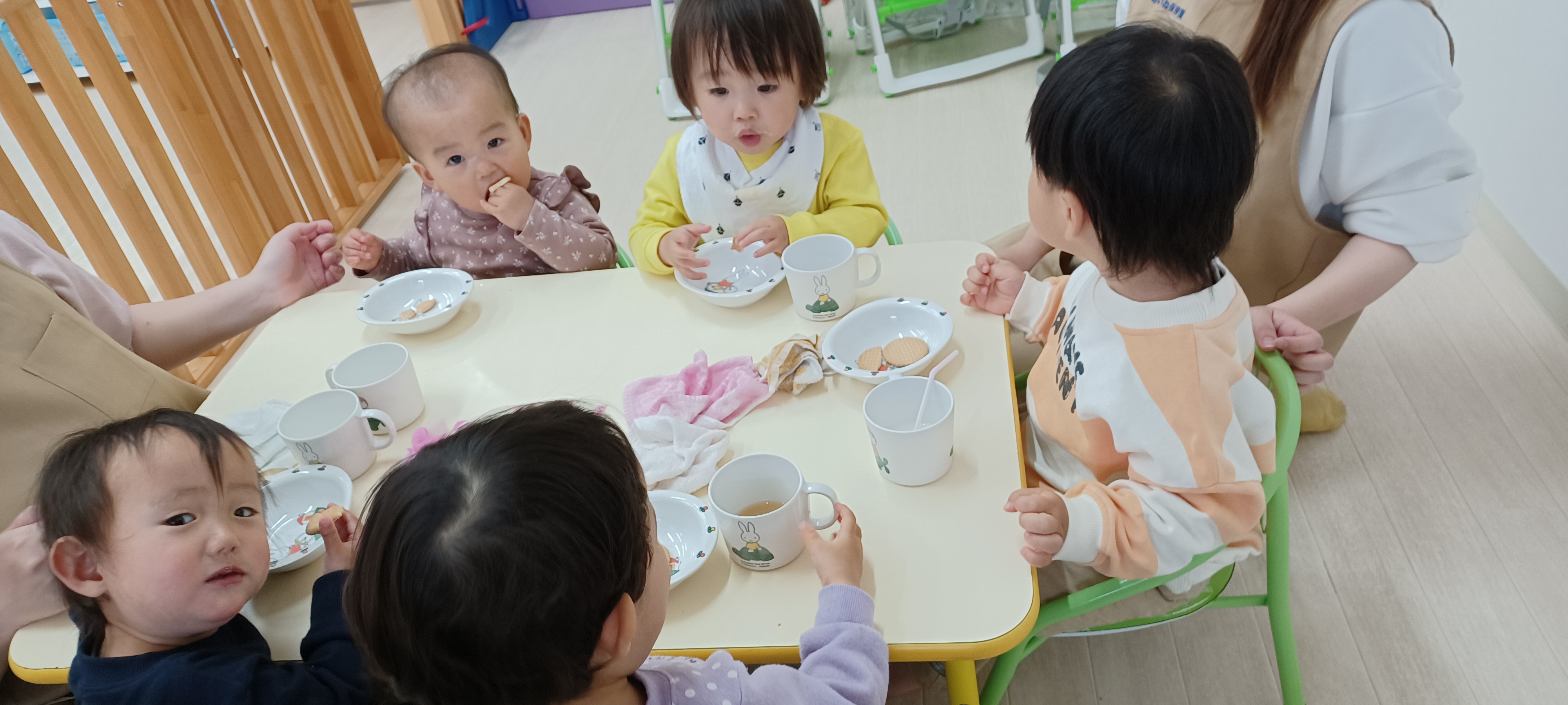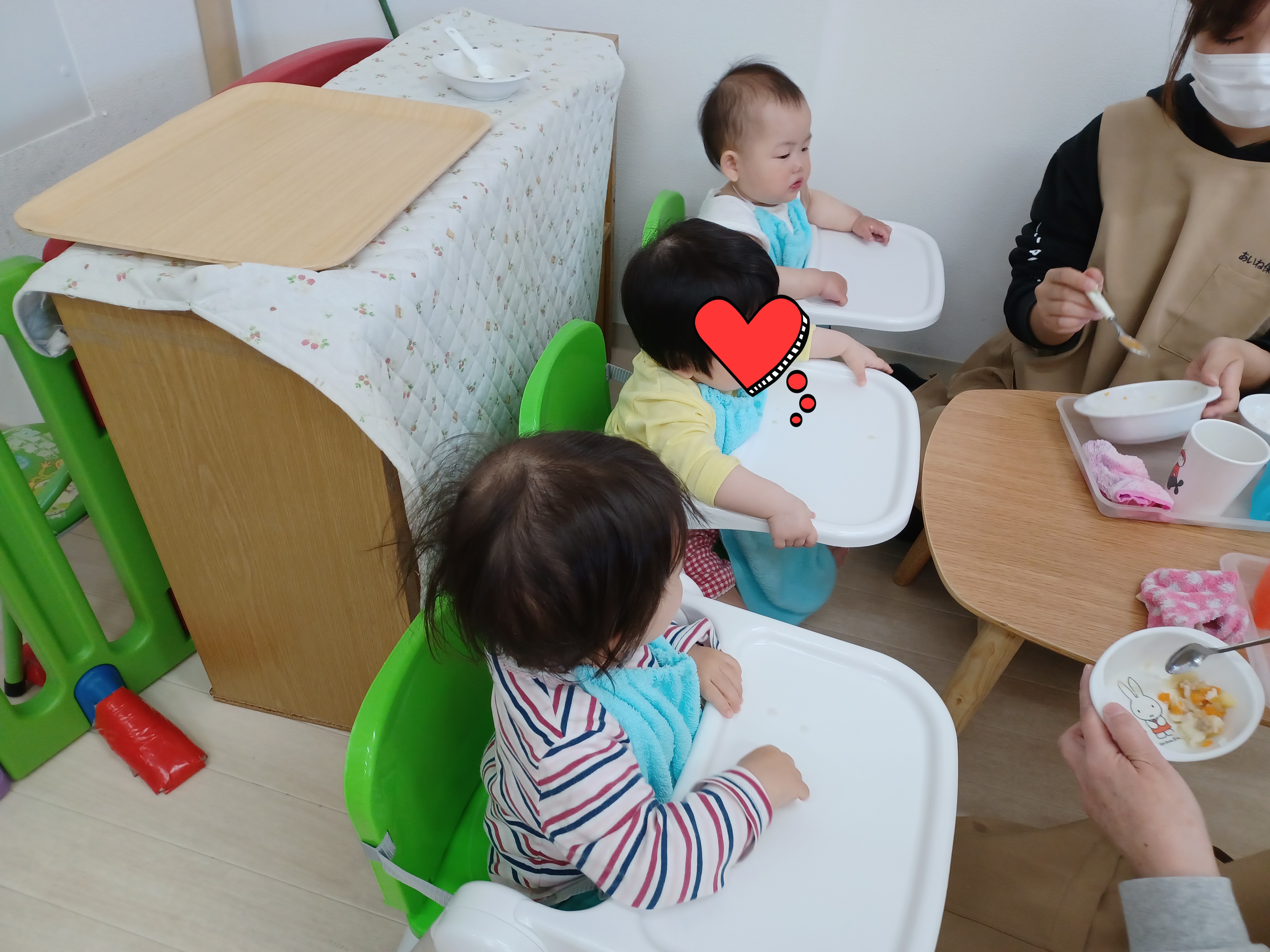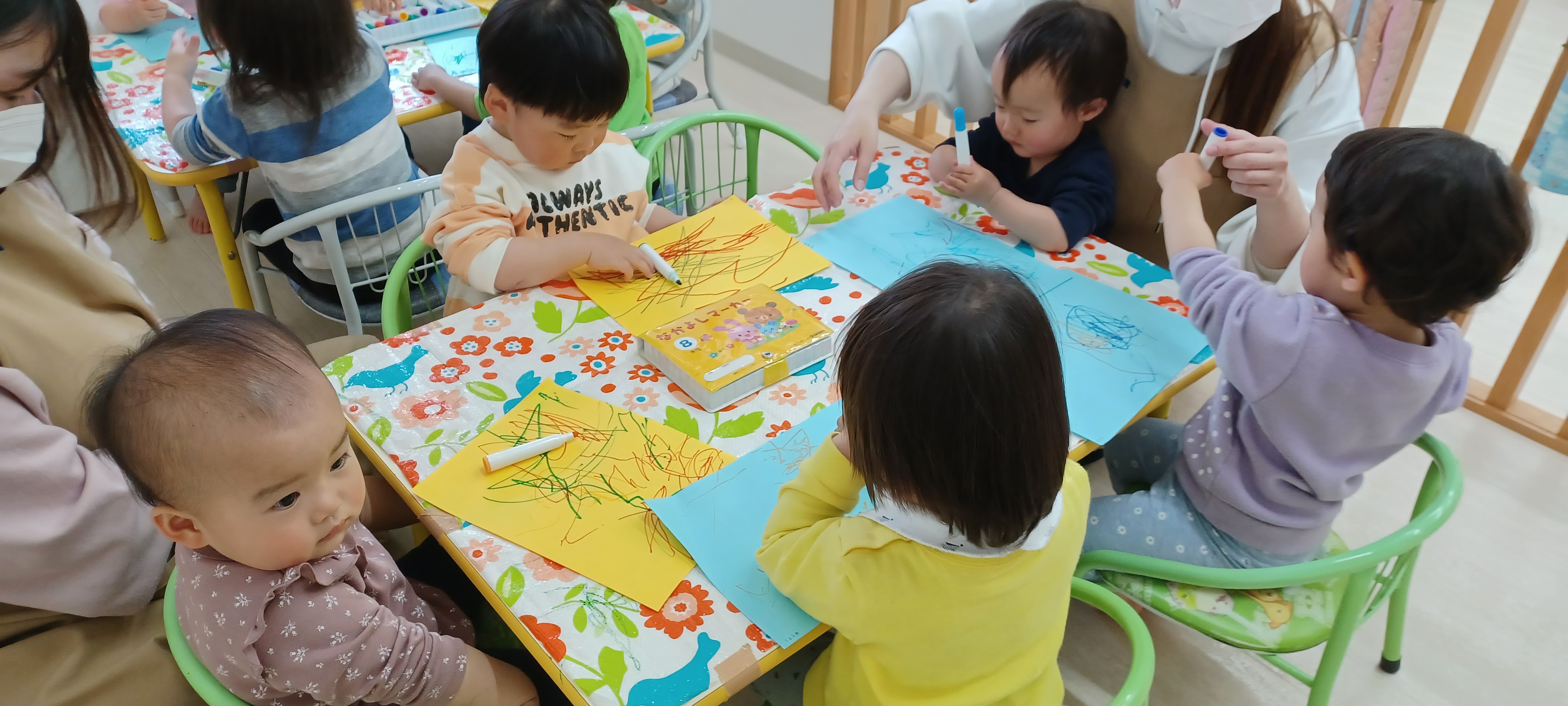 お誕生日会&製作 4月の様子をお届けします♪ 4月のお誕生日会です。 ケーキの歌でお祝いしました🎂 サインペンでお絵描きをしました。 楽しくお絵描きできました☺️ ひよこぐみ🐣 りすぐみ🐿️ うさぎぐみ🐰 おやつの時間😋 新入園児のお友達も保育園になれてきました! ご飯もおやつもみんなでペロリ! 5月からも楽しくすごしましょうね♪ 2021年05月01日 04:45 スタッフ