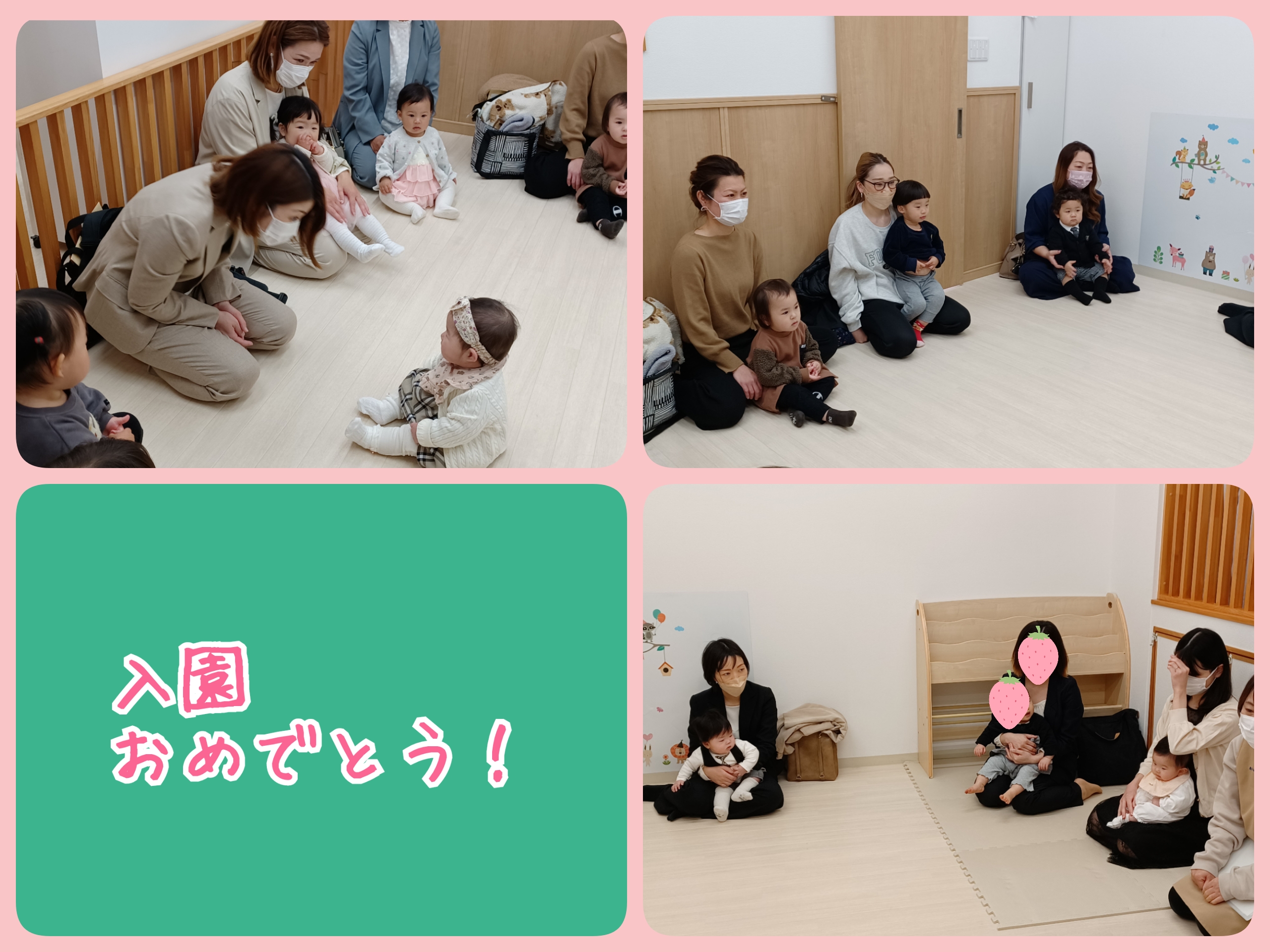 初めての保育園生活に不安も多いと思いますが、1日もはやく保育園で楽しく元気に過ごせるよう職員一同頑張って参ります。