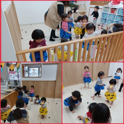 豆まき👹 2月3日は節分の日でした! そこでみんなで鬼の子になって豆まきをしました! 「鬼は外~!」と言いながら上手に豆まき👐 なんとそこに… 鬼の登場👹 みんなビックリ‼️ 「鬼は外~!!」と豆を投げて退治することができました!👐 最後はみんなで笑顔でパシャり📸 今年1年も鬼よりも強く元気に過ごせますように💪 2023年02月07日 02:34 スタッフ