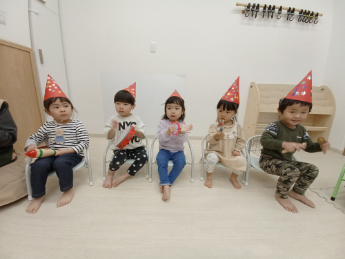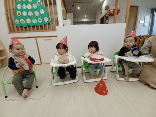 クリスマス会🎅 12月21日クリスマス会 毎日の朝の集まり会で アドベントカレンダーを めくりながら楽しみにしてました🎵 作ったサンタ帽子をかぶって 楽器遊び! そこへ、プレゼントを持ってサンタの登場🎅 楽しいクリスマス会になりました🔔 今年もあと少しとなりました。 この1年、元気に過ごすことができ嬉しく思います。 これから寒さも厳しくなりますが、ご家族揃って楽しく新年を迎えられますことを願っています。 2023年12月22日 01:06 スタッフ