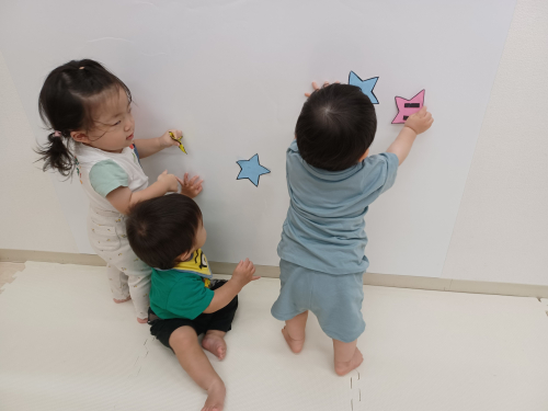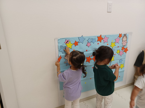 七夕の集い🎋 今日は七夕のお話を聞きました🌌 お話を聞いた後は、織姫さまと彦星さまが天の川を渡って会えるようにみんなで星探しをしました! みんなたくさん星を探して貼っています✨ ひよこぐみさんも、お星さまぺったん🎵 みんなで集めた星で天の川が完成しました🌌 みんなのお願いごとが叶いますように🎋 2025年07月03日 01:13 スタッフ